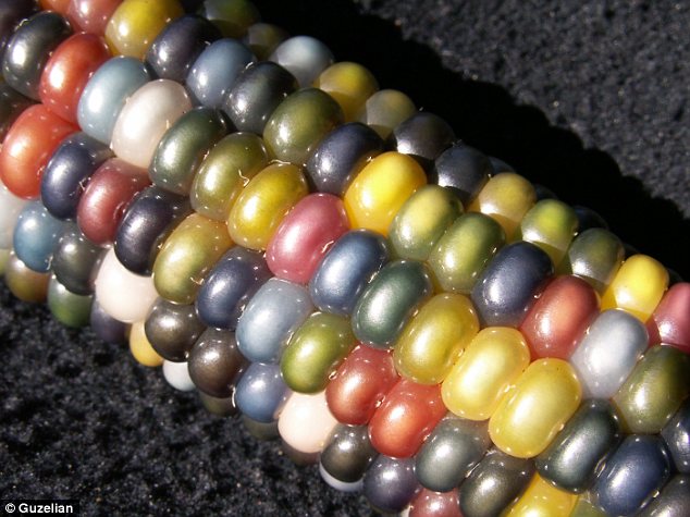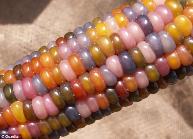 茹でるとよりカラフルなガラスビーズに見えるようなトウモロコシは本物 ガラス宝石トウモロコシはネイティブアメリカンの農夫によって数年書け開発された。 この風変わりなトウモロコシはオンラインで購入可能でガーデナー達に人気急上昇中 Read more: http://www.dailymail.co.uk/news/article-2440109/Vivid-multi-coloured-corn-grown-Native-American-farmer-years-painstaking-breeding.html#ixzz2gU6PD2KC