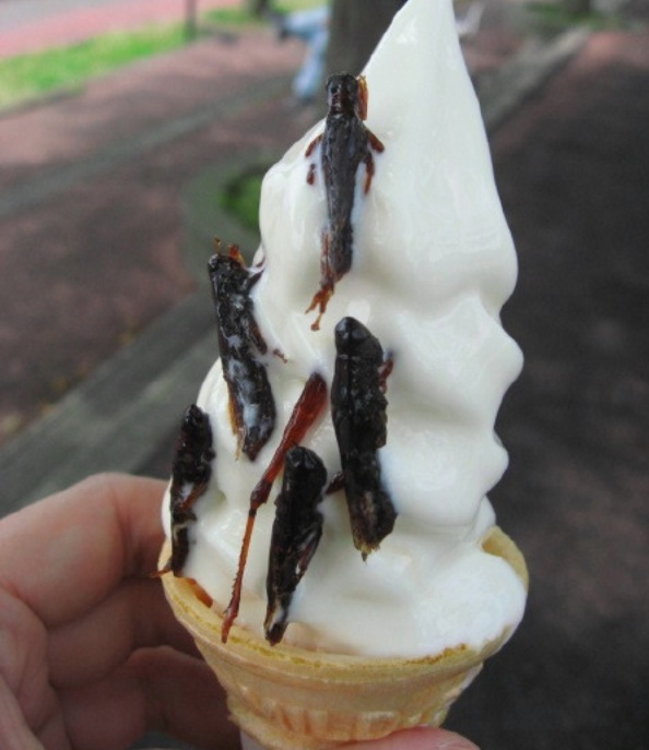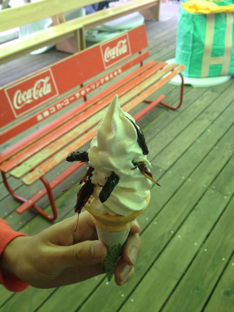 【閲覧注意】 長野県で売られてる「バッタソフトクリーム」がマジキチwwwwww (画像あり)
