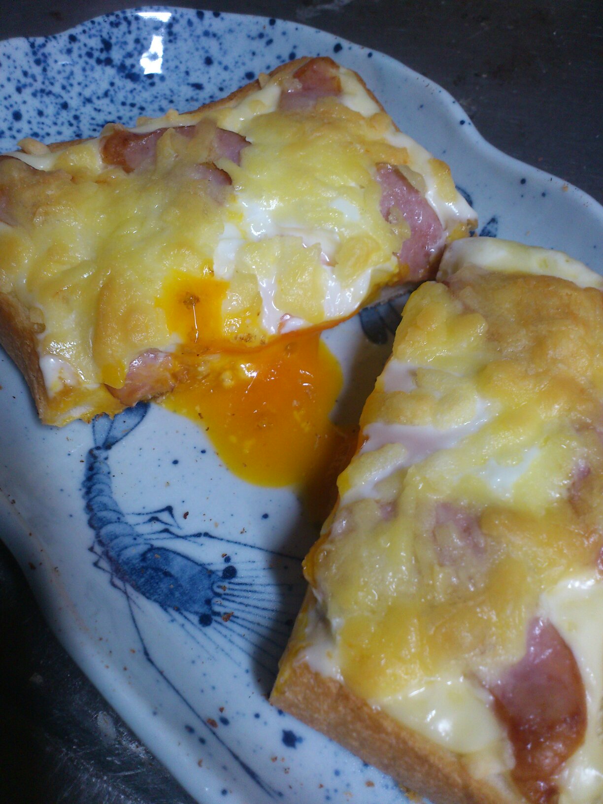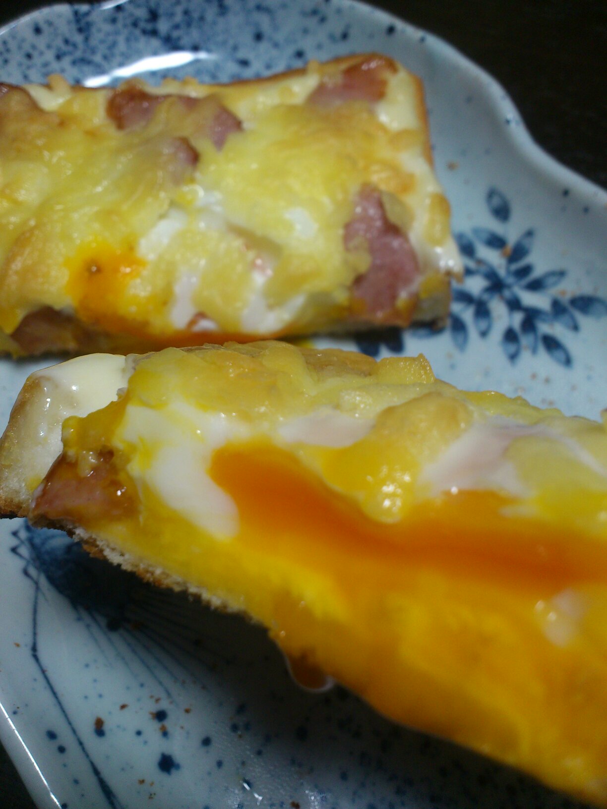 焼いた後、しばらくトースターにパン入れっぱなしにしたらいい感じの半熟!