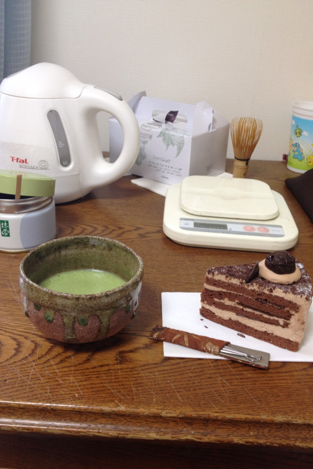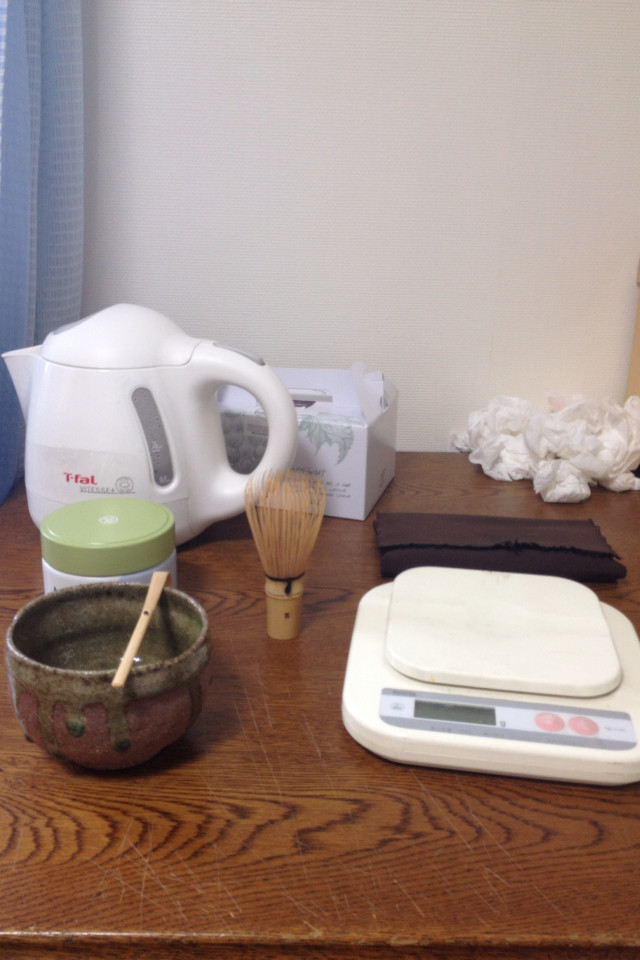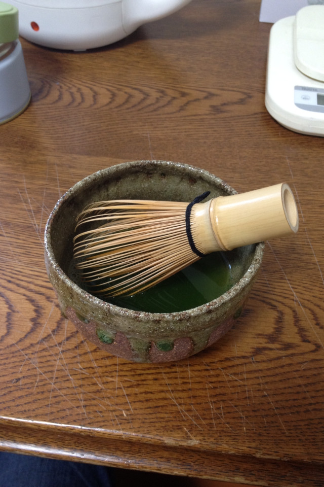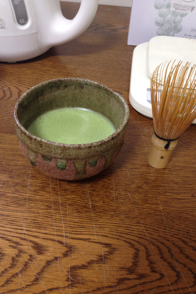 お茶は抹茶沢山入れて熱いお湯入れれば適当に点てても綺麗に点つ