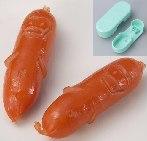 ソーセージを置いて、手でフタをはさむとワンタッチで筋目が出来る。