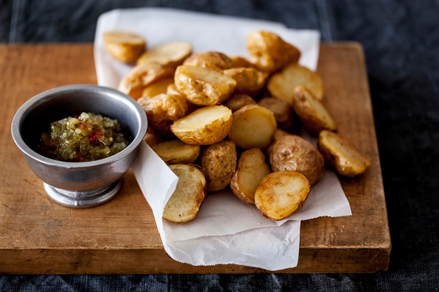 冷凍ポテト素揚げして、それに牛角のバジルだれかけて食うと美味い。