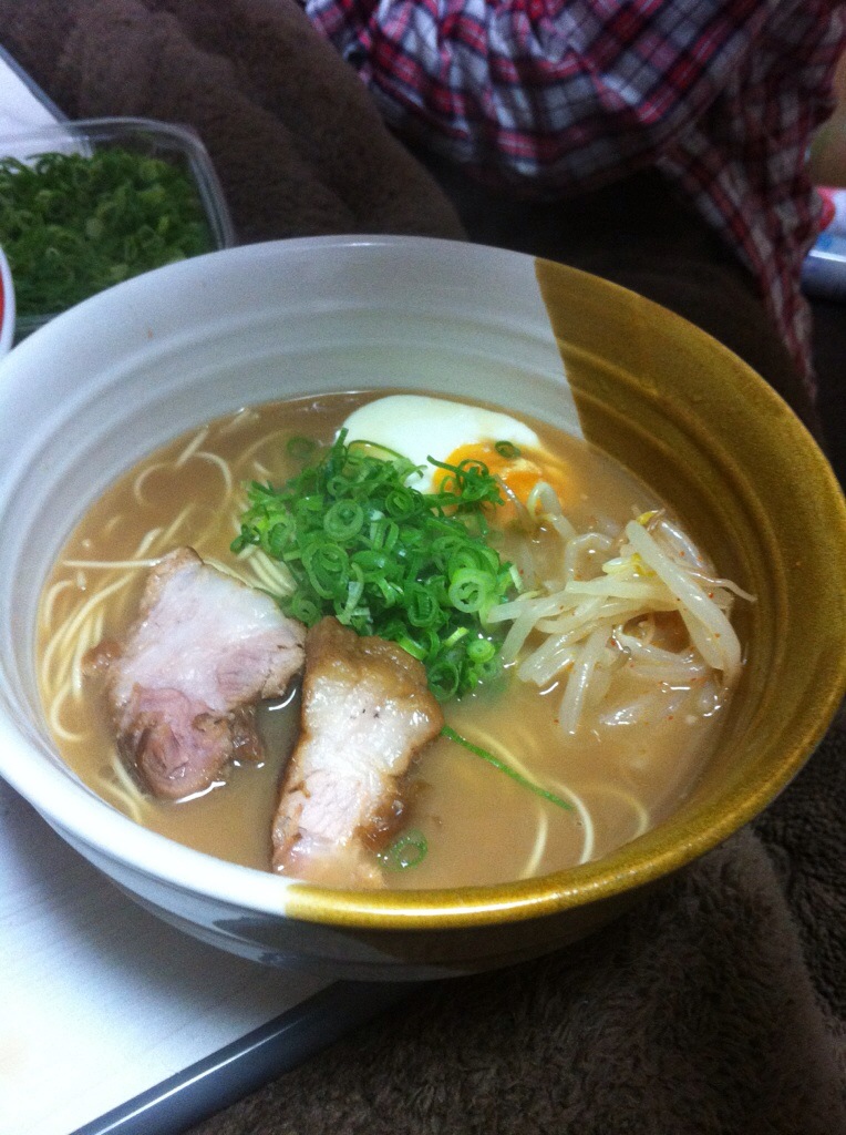 乗せて食べるわ。ラーメンは、スーパーで売ってる2食150円