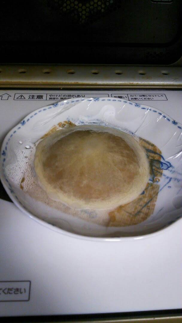 肉まんを水で濡らしてラップしてチンでふわふわ