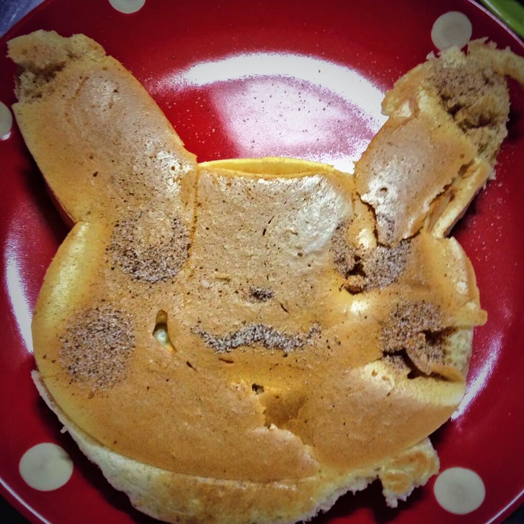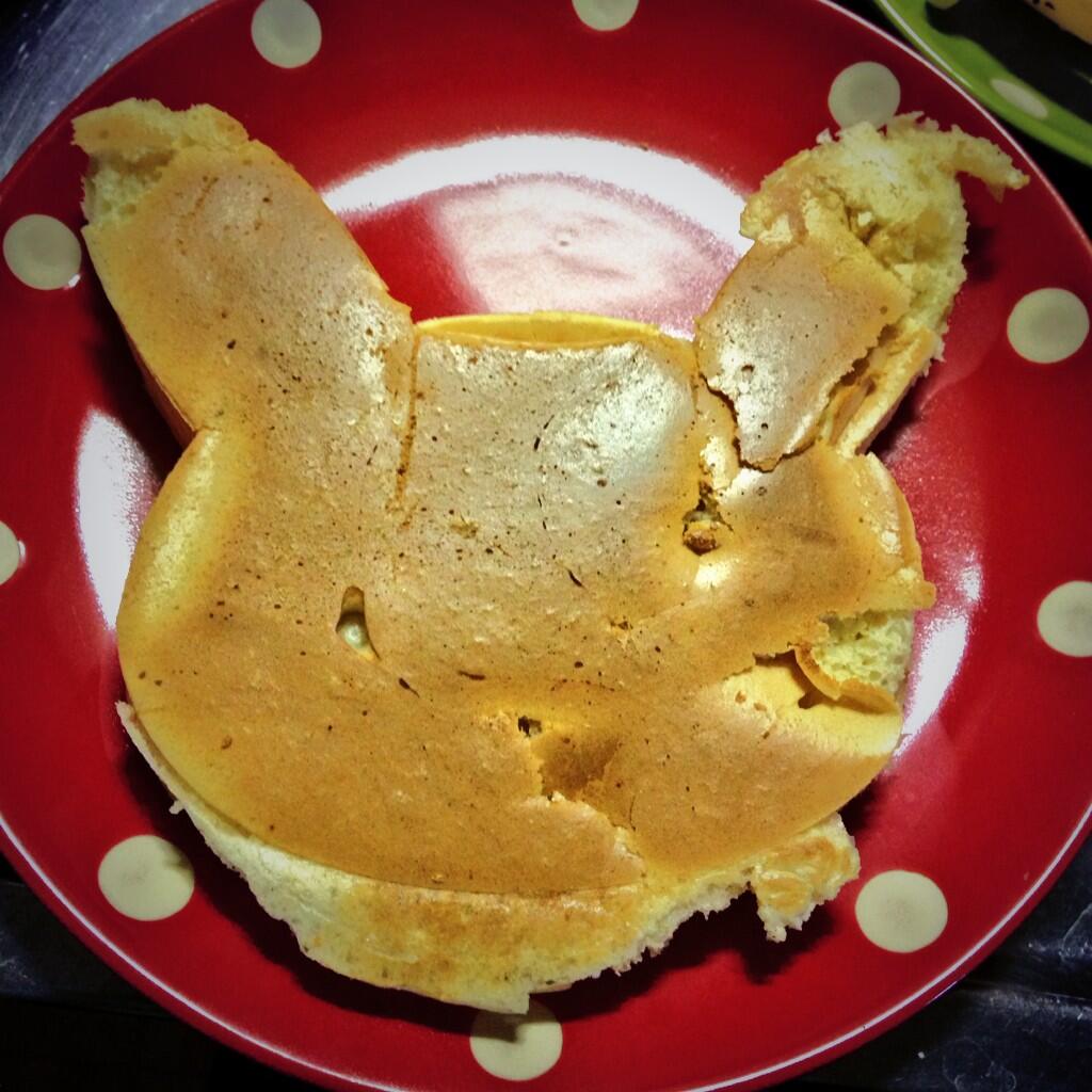 生地を流し込む ←ここで型の下側から生地が漏れたため、ピカチュウの顎に羽が生えた
