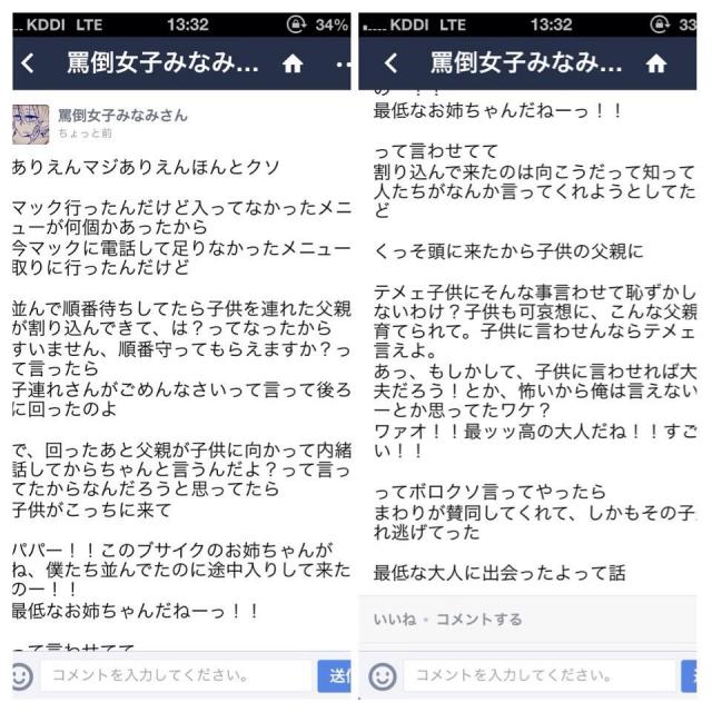 文句言って後ろ行かせたら、父親が子どもに耳打ちして、「ブサイクなおねぇちゃんに割り込まれた!」って言わせた。