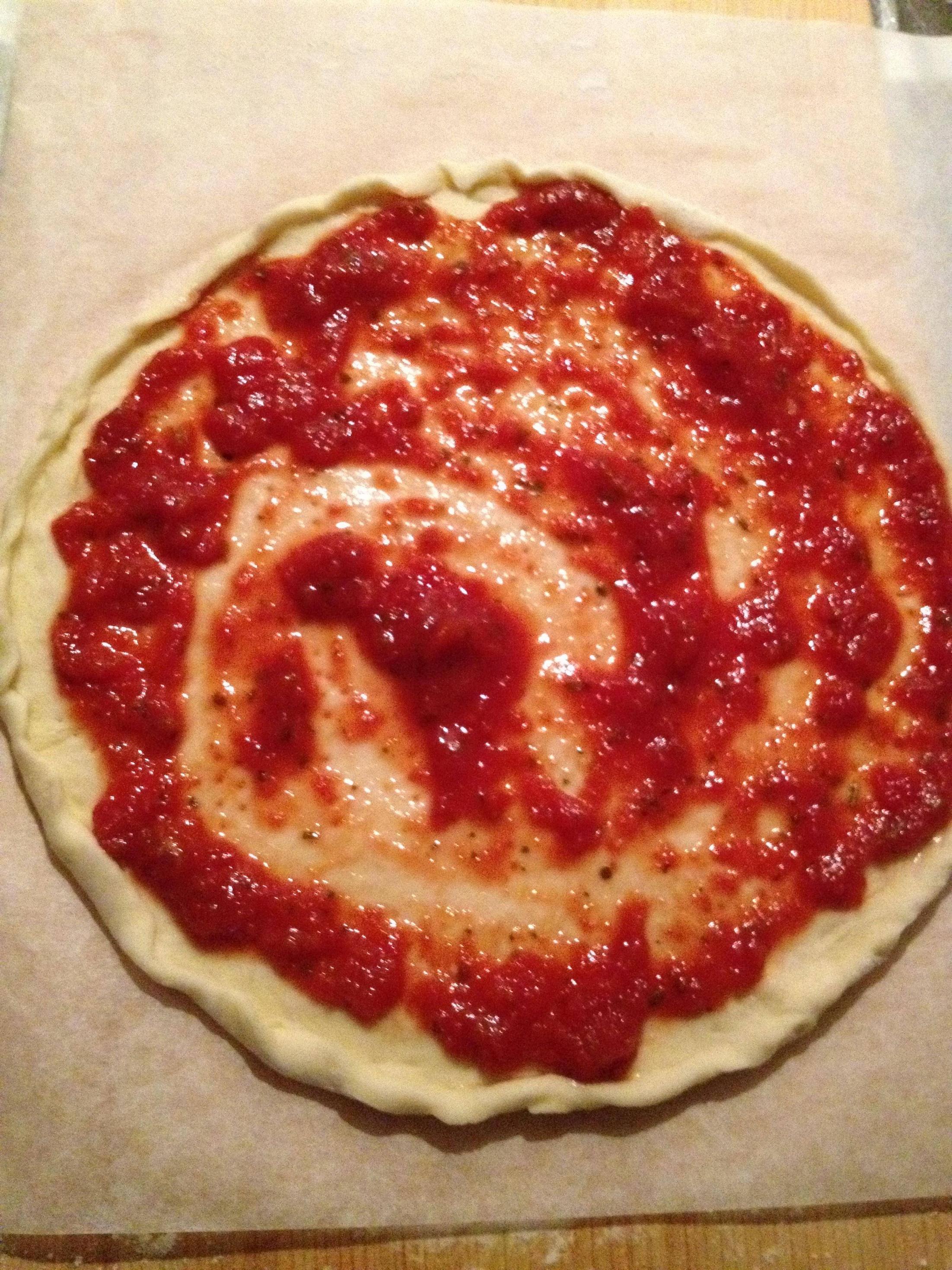 まえに似たようなピザ作ってパンみたいなイイ感じになったことあったけど薄力粉で作った気がする。
