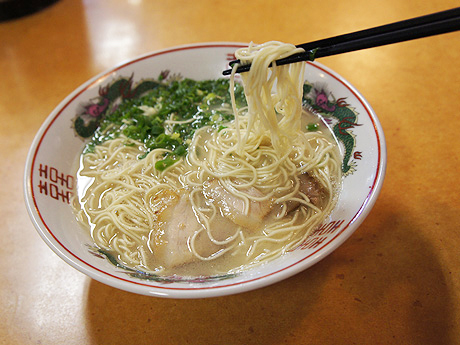 長浜あたりの市場関係者がおやつ代わりに食べとったから、細くてゆであがりが早い麺になったんだけど。長浜ラーメンなんかは「ご注文は」なんて聞かず、入り口入ると「ラーメン1杯」「ラーメン2杯」だったから、席に座ったら間髪入れずラーメンが出てきた。今は違うのかね~。「かた」とか注文するのは、替え玉の時だけだったけど。