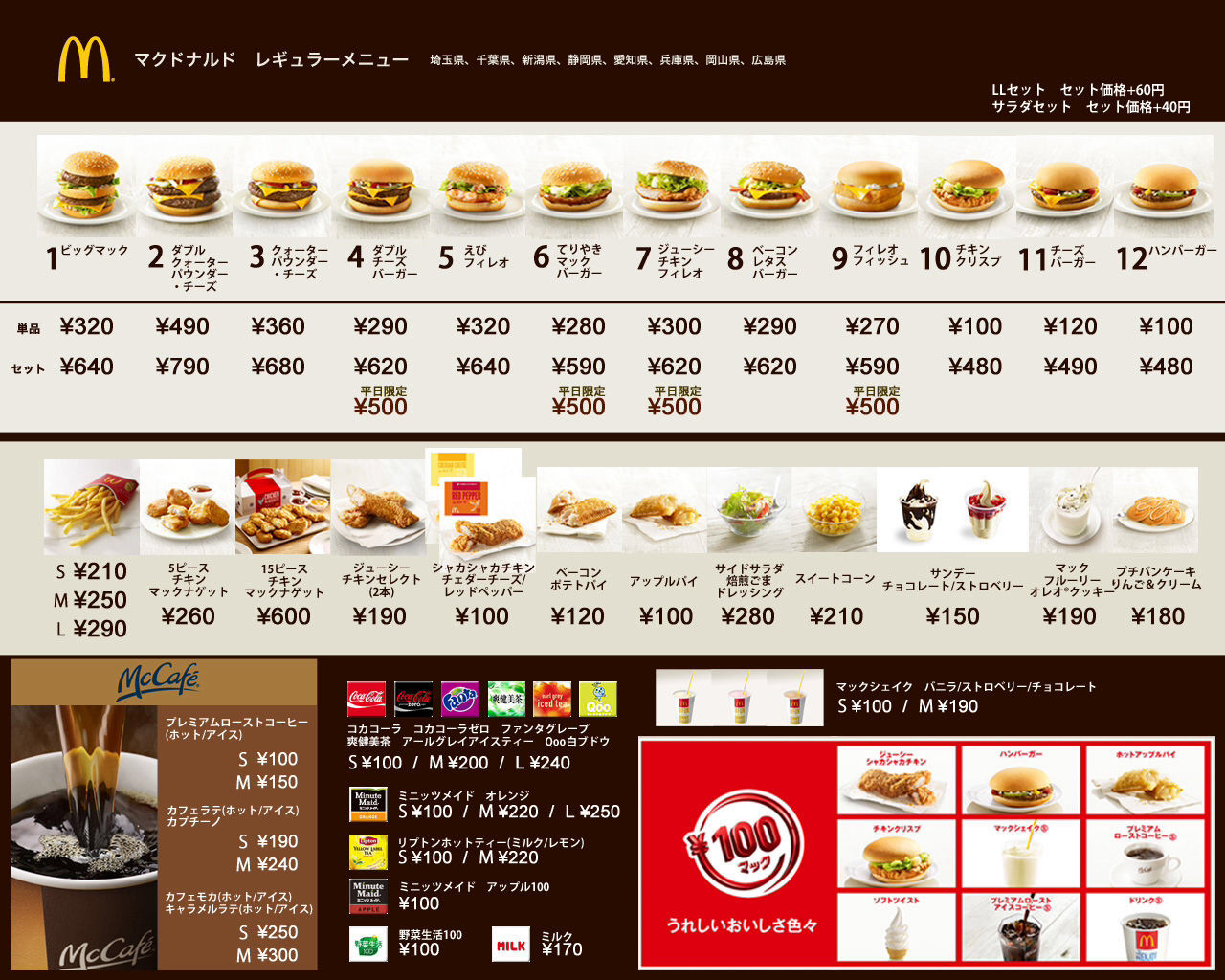 ハンバーガー80円、チーズバーガー100円、てりやき150円、ビックマック200円が適正価格。