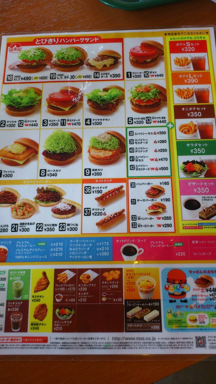 >>53 モスのメニューちょっと古い 俺の愛したホットドッグは今や300円なのだ