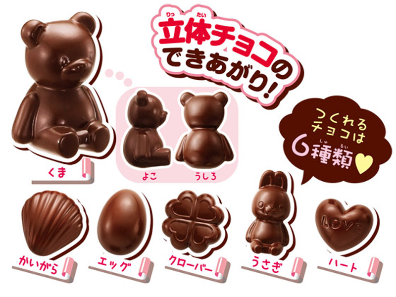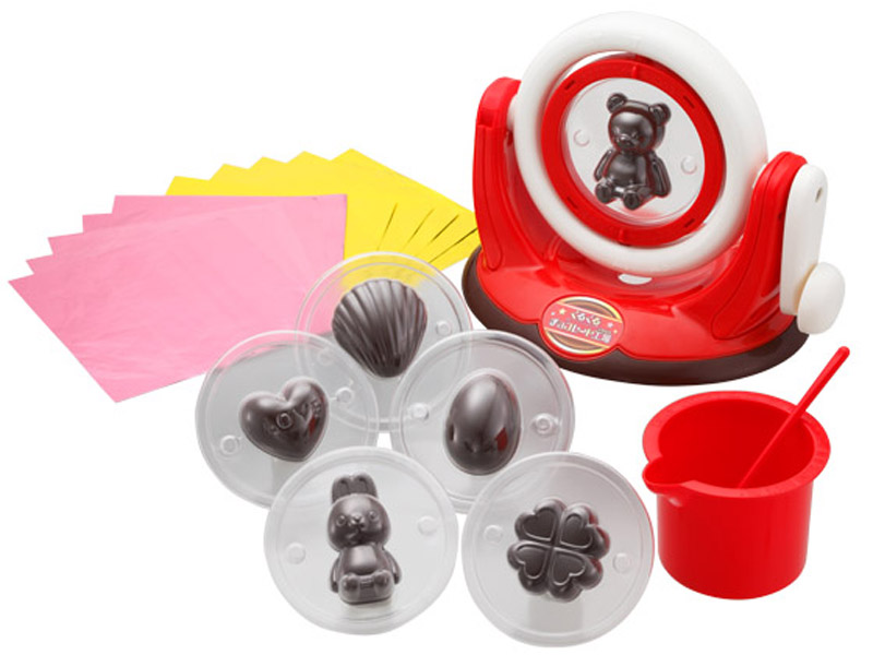 バンダイは、クマやウサギ型のチョコレートを簡単に作れる「くるくるチョコレート工場」を9月27日より発売する。 希望小売価格は3,800円(税抜)。 チョコを成形するクッキングトイ。クマやウサギなどの立体的なチョコを作れる点が特徴。 クマとウサギのほか、シェル、エッグ、四葉のクローバー、ハートの計6種類の型が付属する。 続きはソース http://kaden.watch.impress.co.jp/docs/news/20140603_651466.html くるくるチョコレート工場 セット一式 9a8d3010.jpg