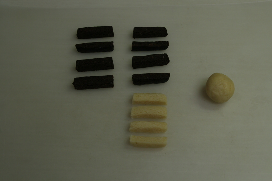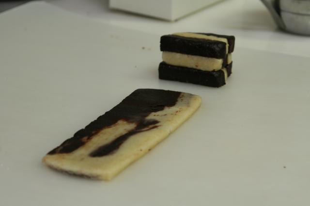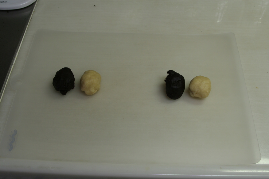 そのうちの半分にココアパウダーを混ぜて黒くした