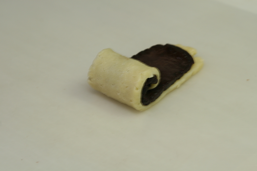 出来上がったのをラップで巻いて冷凍庫で10分休ませるよ
