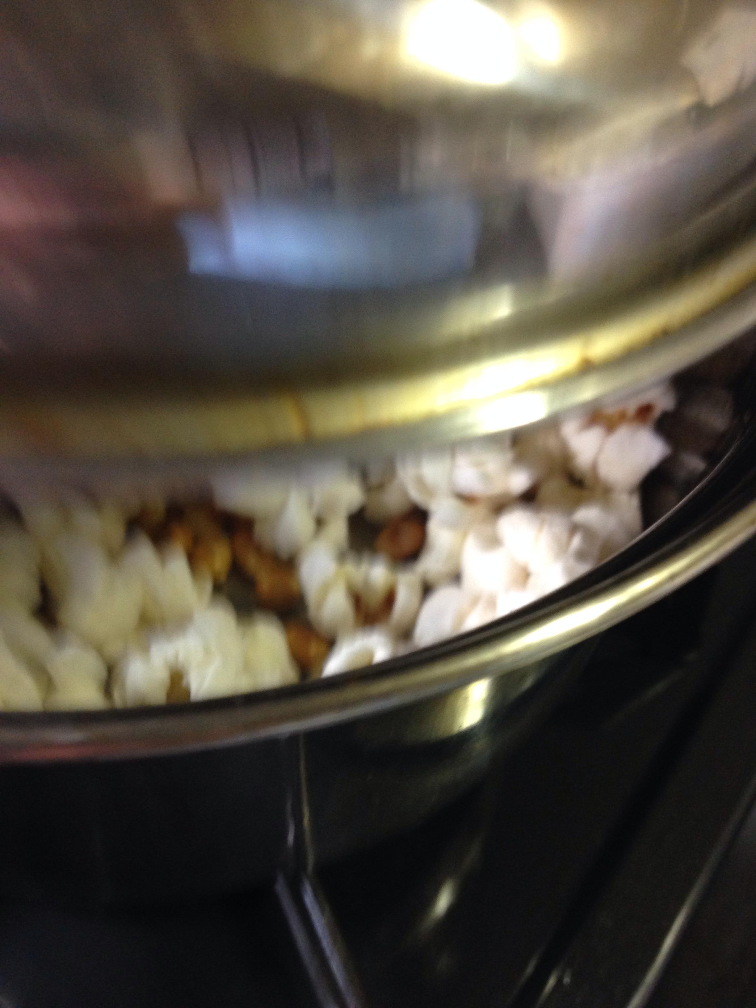 ポンポンのピークが終わったら火を止める 余熱で弾けるのでさらにシャカシャカ振る