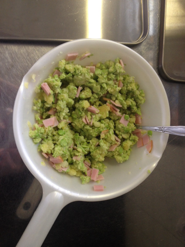 枝豆茹でて剥いた。薄皮も取り除いた。 ハムは5ミリ角に切った。 枝豆は柔らかめに茹でれば良かった… ハムは2ミリに切れば良かった…