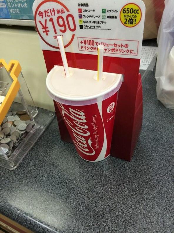 内容量は650ccでMサイズの2倍とのこと。しかし、ストローを2本差しているため、Twitterユーザーからは「リア充専用だ!」との声が挙がっているのだ。