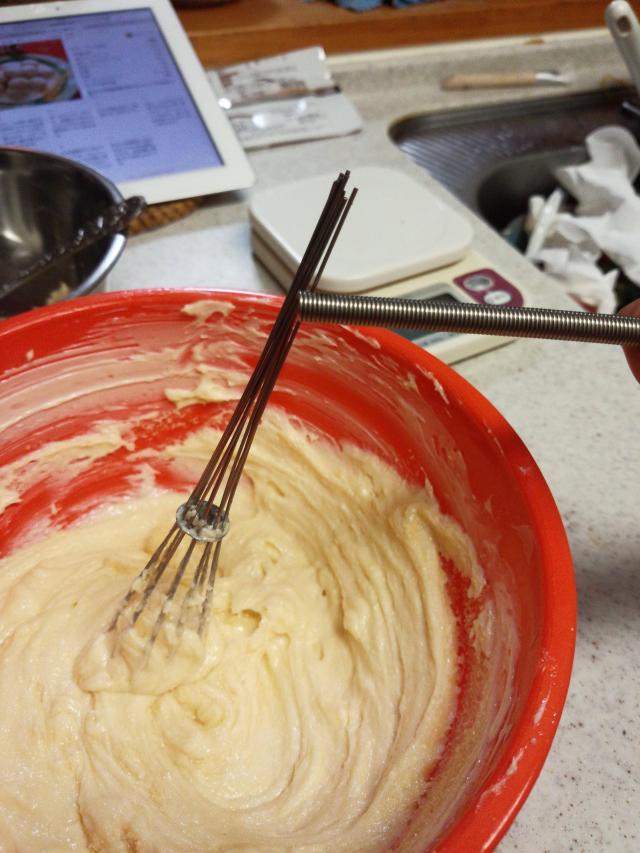 こっちはビニールでぽんぽんしたのとバターを混ぜますよー b9154c8b.jpg