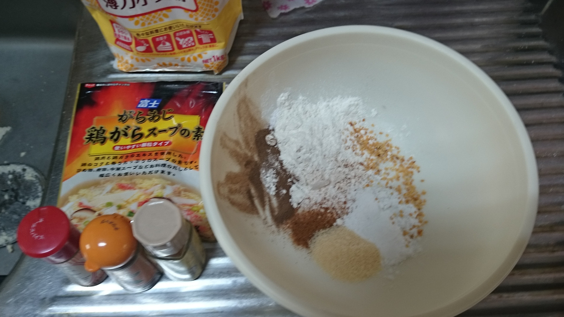 小麦粉に砂糖を入れて