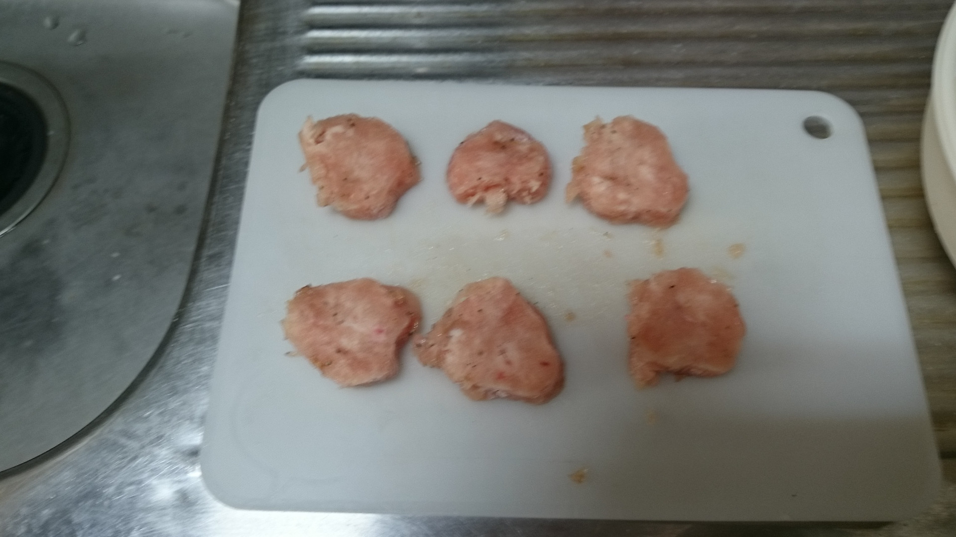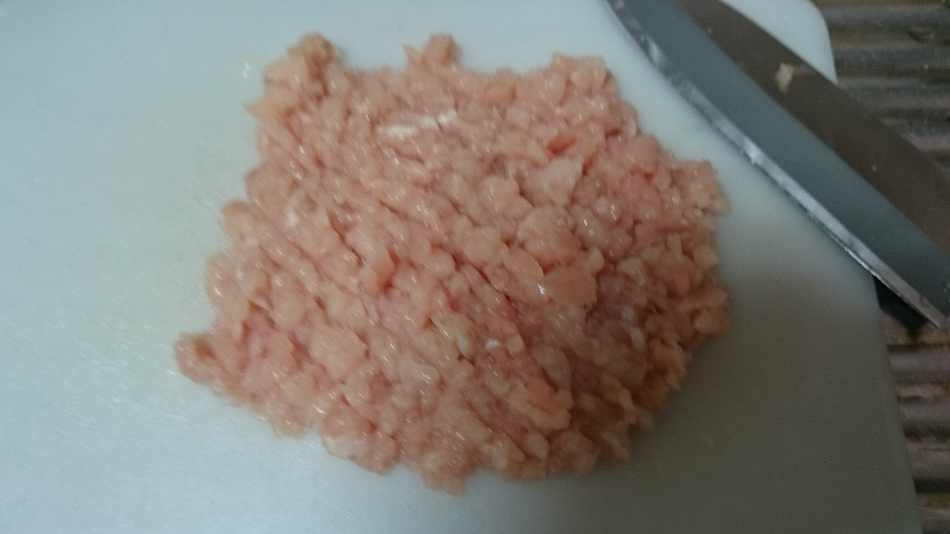 少し荒めに叩いてあります 他の調理の進行具合にあわせて具材を用意しないといけないのがキツい