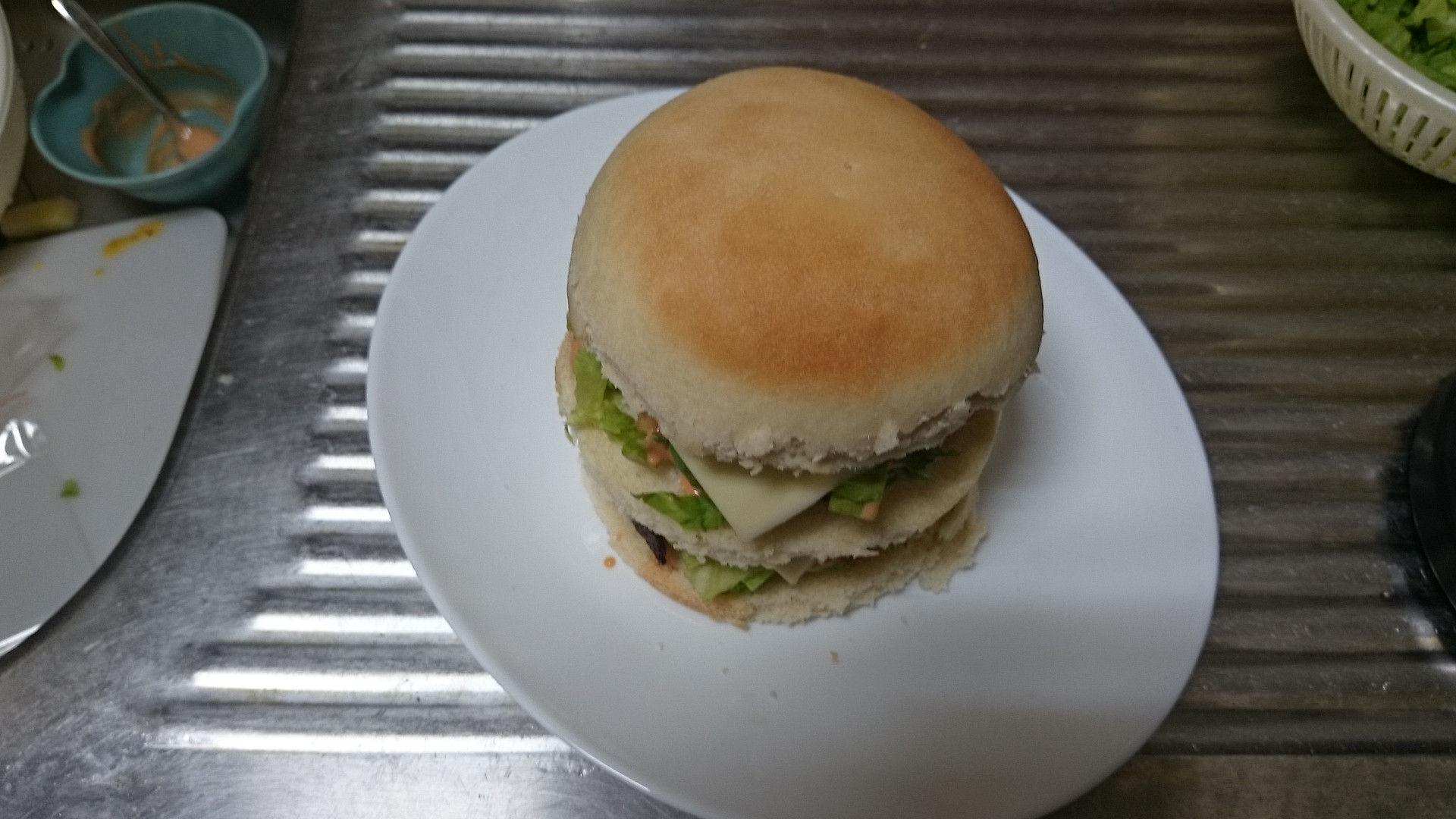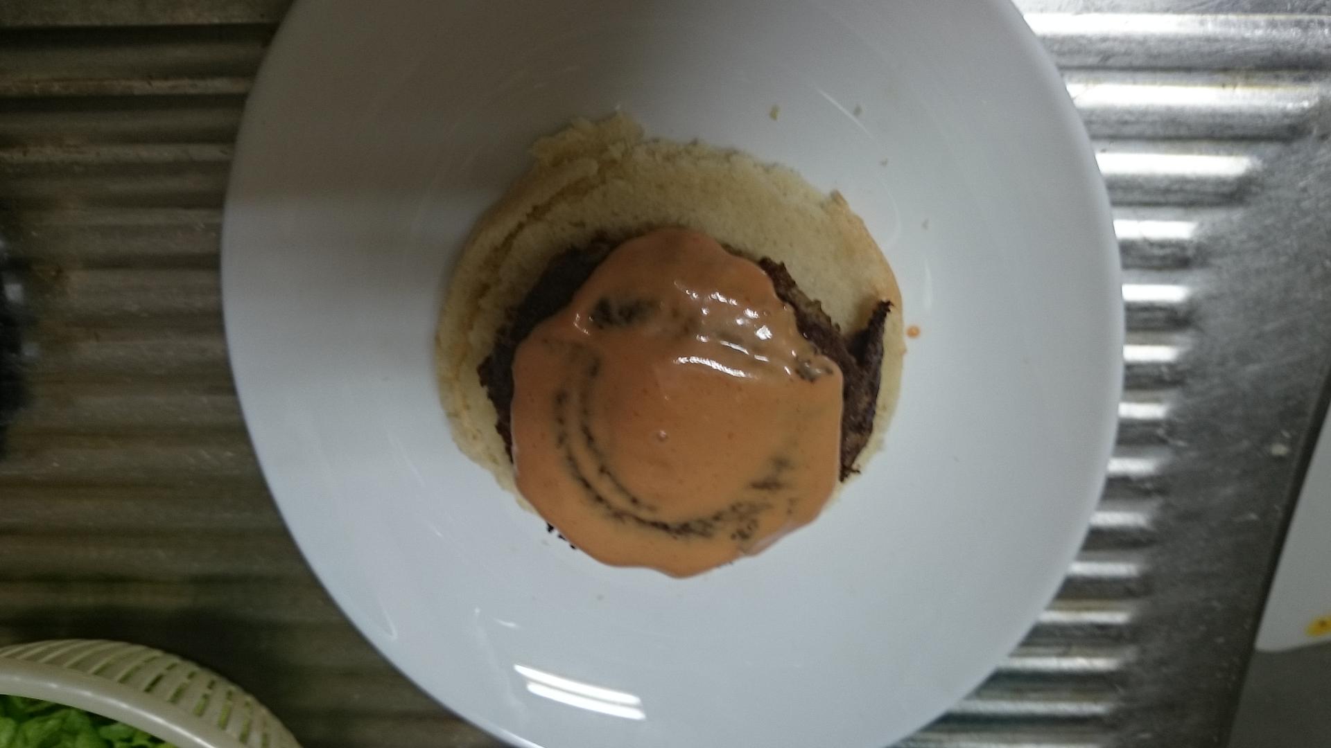 実はバンズは前日の作り置きです 捏ね、発酵、焼きで3時間ぐらい時間がかかります(´・ω・`)