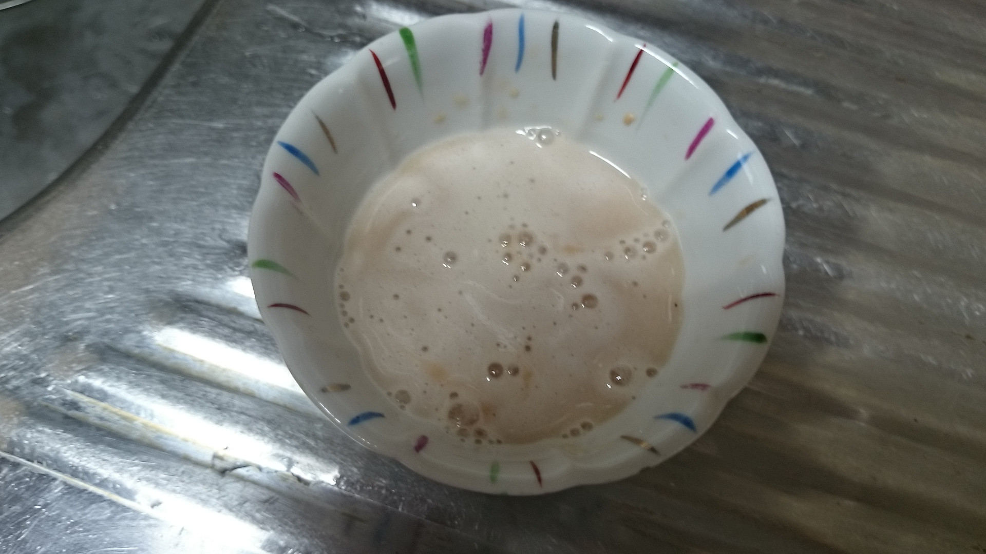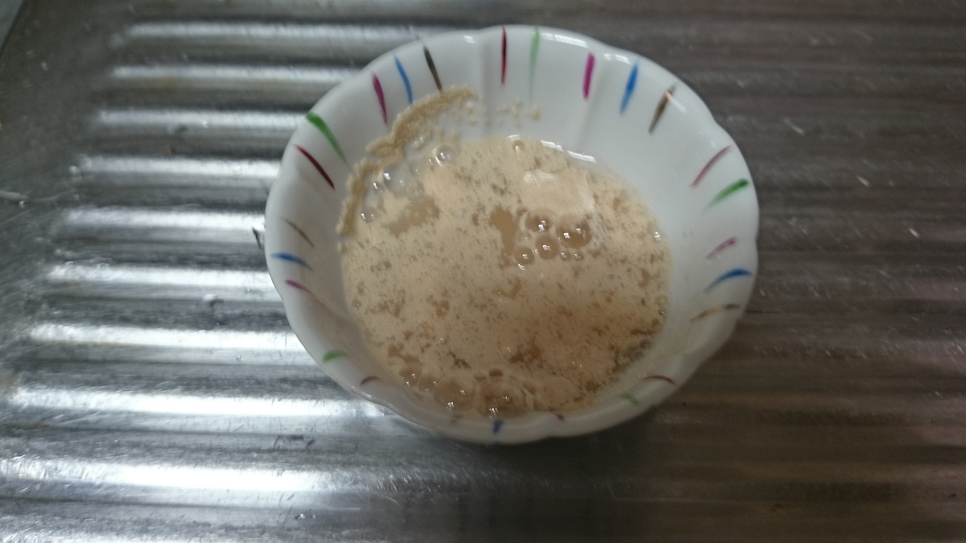 ドライイーストは砂糖水で溶かして直ぐ使えるけど 劣化すると発酵が弱くなるのでチェックのために少し泡立ちを見て確認してます