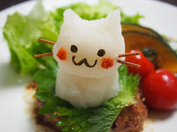 「大根おろしアートがはやっているので、今日はにゃんこさんを作ってみました♪