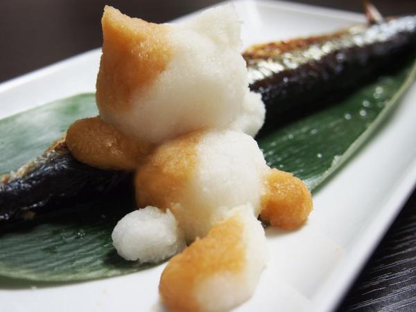 大根おろしで作った「サンマにかぶりつくニャンコ」がかわいすぎ!!