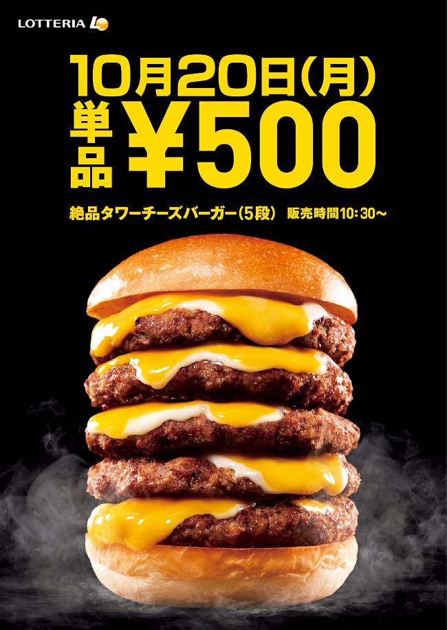 【画像あり】ロッテリアの絶品タワーチーズバーガー500円wwwwwww
