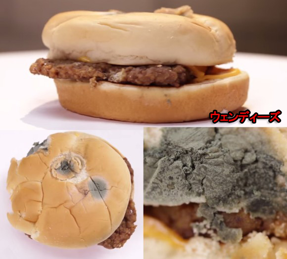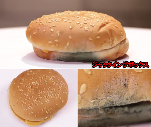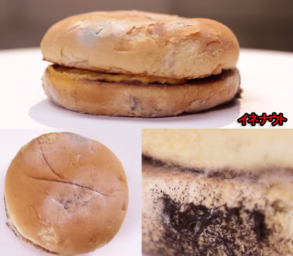 バンズのカビに目が行ってしまうけど、パティが痛んだ様子がないことのほうがもっと恐い。