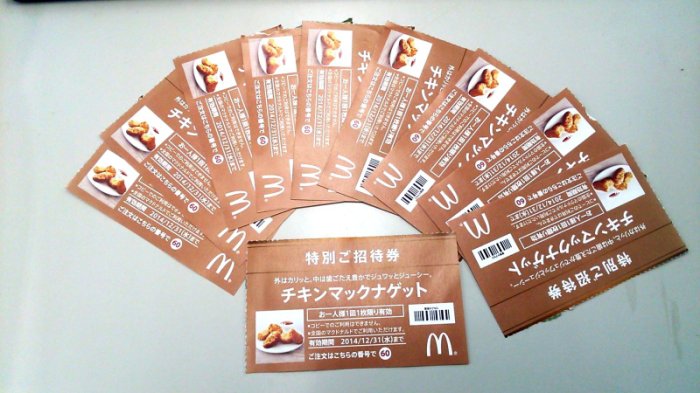 先週より、『Twitter』などではマクドナルドがナゲット無料券を配布していると話題になっている。マクドナルドでもらえる「マクドナルド 安全と品質の約束」という小冊子に、「特別ご招待券」という名前の『チキンマックナゲット』無料券がついているというもの。 『Twitter』では、マクドナルドでナゲット無料券をゲットしたというツイートが多くみられるが、「無料で食べることができて嬉しい」という主旨のツイートもあれば「タダでもいらない」というツイートもかなりある模様だ。 ということで、1000人にアンケートをとってみた。 続きはソース http://news.livedoor.com/article/detail/9385883/