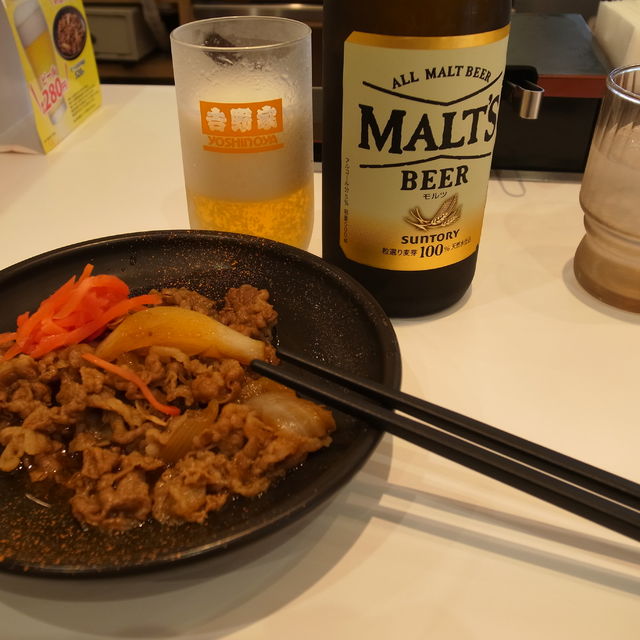 夕飯+チョイ飲みとして、牛丼並と中瓶で650円だからかなり安い。