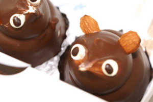 上面の淵周りをチョコであみあみにして、間に赤と緑のゼリーが交互にちょこんとスライムみたいにいた。