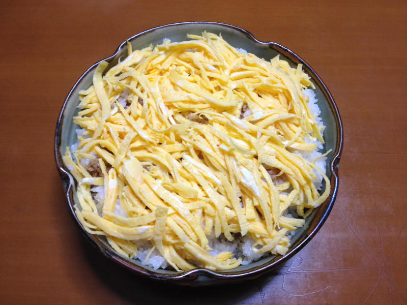 錦糸玉子乗っけてる皿が我が家と同じだw