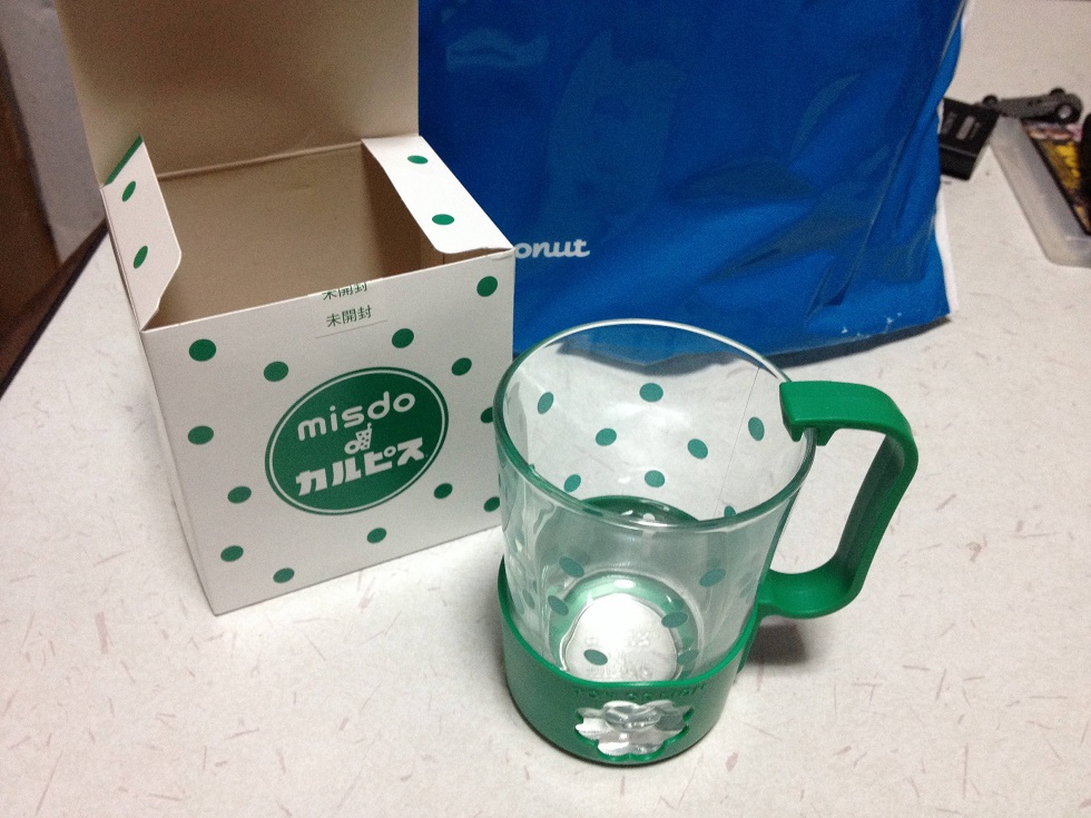カルピスグラスは夏のやつだな。 欲しかったけどあんまりミスド買うこと無いからなぁ。