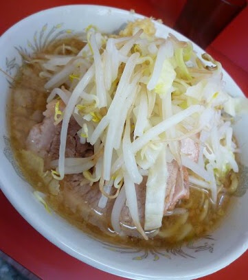 もちろん無料トッピングは全部マシマシ。ごっつい麺がバキボキ食感で最高。シャキシャキとしたモヤシは、最初はプレーンな状態で食べ、あとからスープをかけて食べると味にメリハリが出て最高。魚粉がスープと共にモヤシにからんでいき、一気に万人受けする味に変わるのだ。生卵をといた液はスープの強い味をマイルドに
