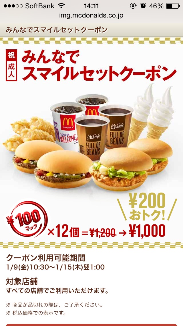 100円マックを12個買うことで200円になるお得