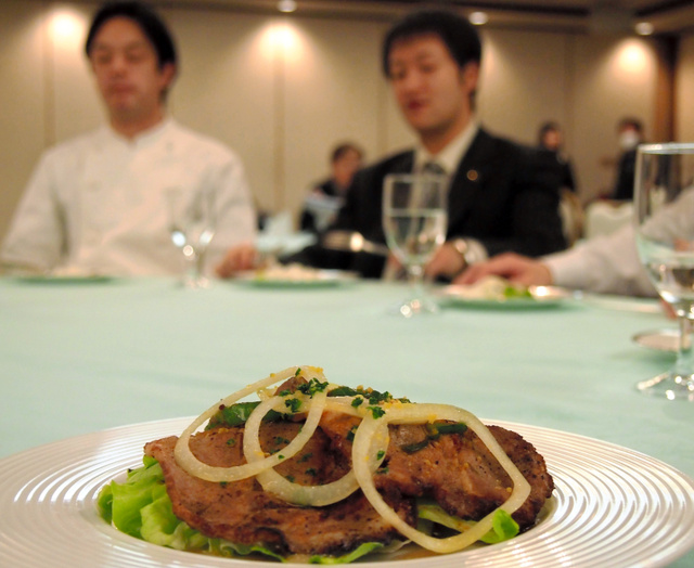 福島市民にかつて40年間ほど愛された名物料理「ブルブル」が、市内の飲食店でよみがえる。11店舗がそれぞれ工夫をこらした「ふくしまブルブル」を16日から販売。関係者は市街地を盛り上げる「ソウルフード」にしたいと意気込む。  「ブルブル」は、1962(昭和37)年に創業し、福島市の洋食店の草分けとなった「レストラン ブルドック」の看板メニュー。焼いた豚肉にコショウとしょうゆの風味がきいて、「思わず体がブルブル震えるうまさ」から名付けられたという。 続きはソース http://www.asahi.com/articles/ASH296699H29UGTB00P.html 写真=ピリ辛の豚肉の上にはオニオン。9日に開かれた「ふくしまブルブル復活発表会」では市内の洋食店シェフらが試食をした=福島市