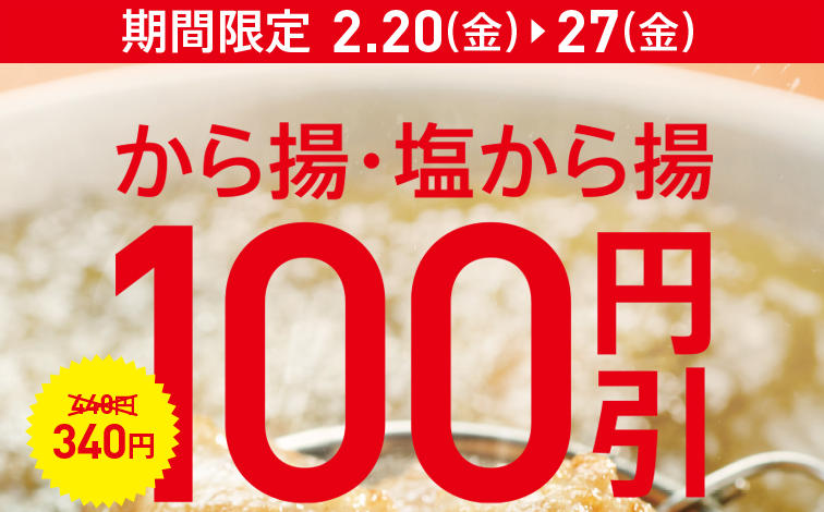 【2月20日から】ほっともっと、から揚げ・塩から揚げが440円→340に値引きキタ━━━━(゚∀゚)━━━━!!