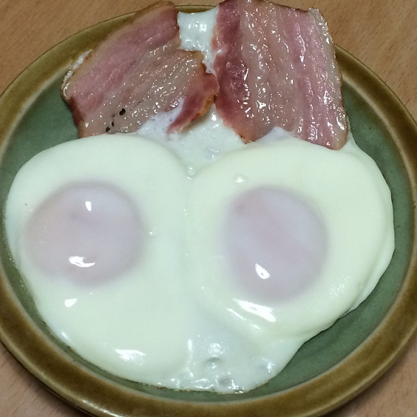下にベーコン2枚敷くだけ黄身は最初から潰している