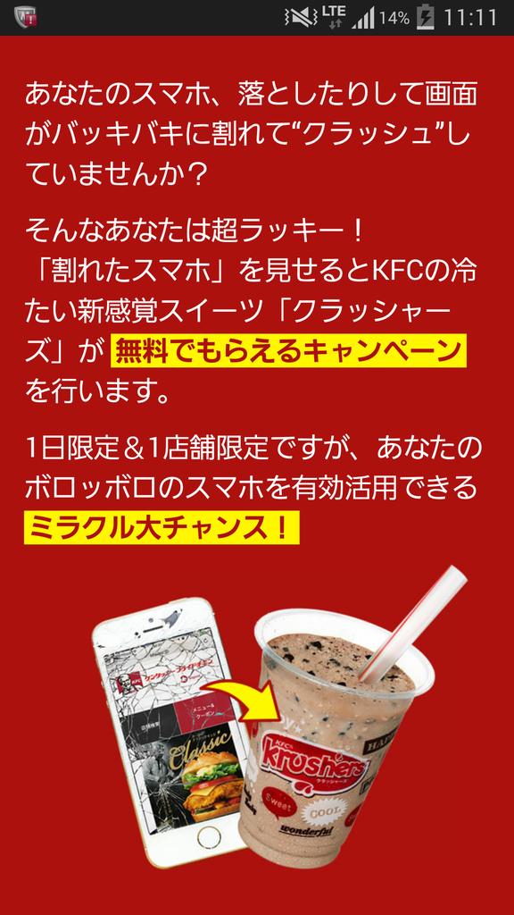 【乞食速報】3月1日限定で画面バキバキのスマホが有ればKFCのスィーツが無料。割れて無い奴はハンマー貸したるで