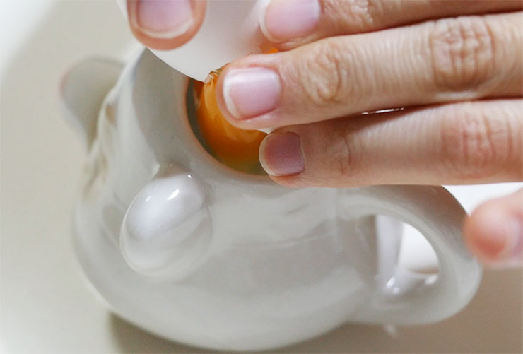 殻を割って、殻の中に黄身だけ残るようにすりゃ