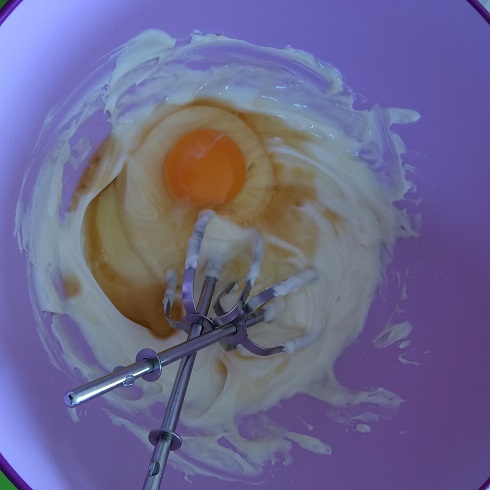 卵とラム酒を加えて混ぜる。
