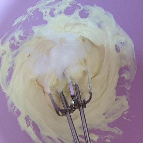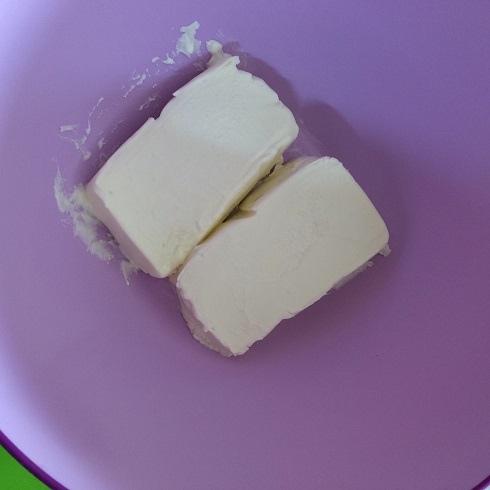 むしゃくしゃしながら砕いたよ(^O^)/ ボウルにクリームチーズをいれて泡だて器で練り混ぜ、砂糖を加えて白っぽくふんわりするまでよくすり混ぜます!