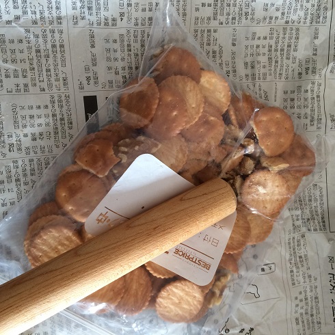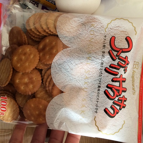 ポリ袋にビスケットとくるみをいれ、めん棒などで叩いて砕く。砕いたらバターもいれる( ^ω^ )