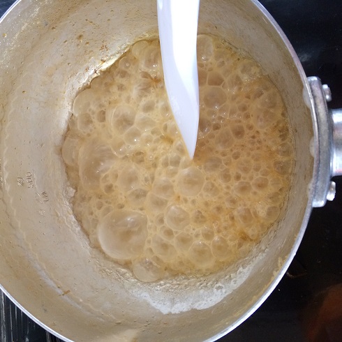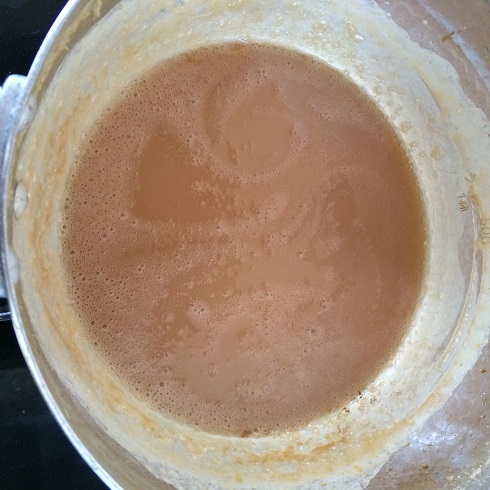茶色くなったら、お湯を加えて生クリーム少しずつ入れたら完成。