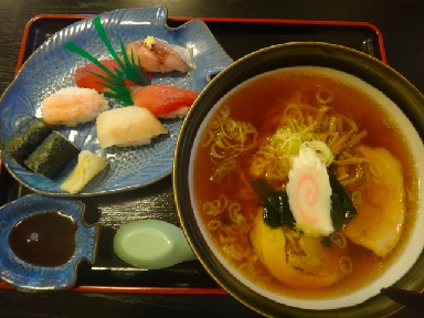 ラーメンと寿司で460円