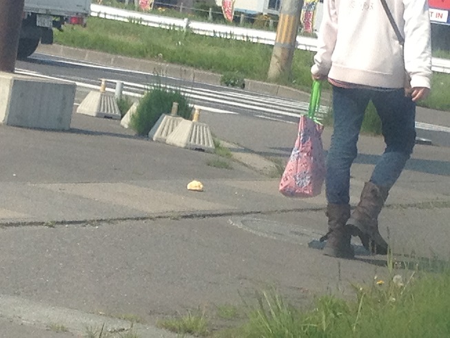 近くの駅の駐輪場におにぎりとかパンとか落ちてるのを見る