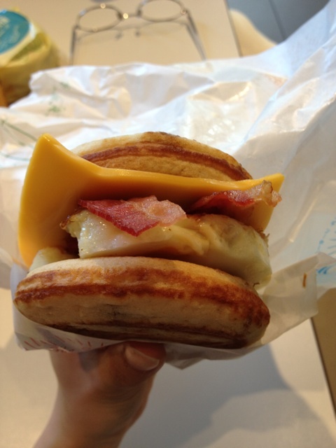 ベーコンの塩味とあっまいシロップて意外といけそうやん!