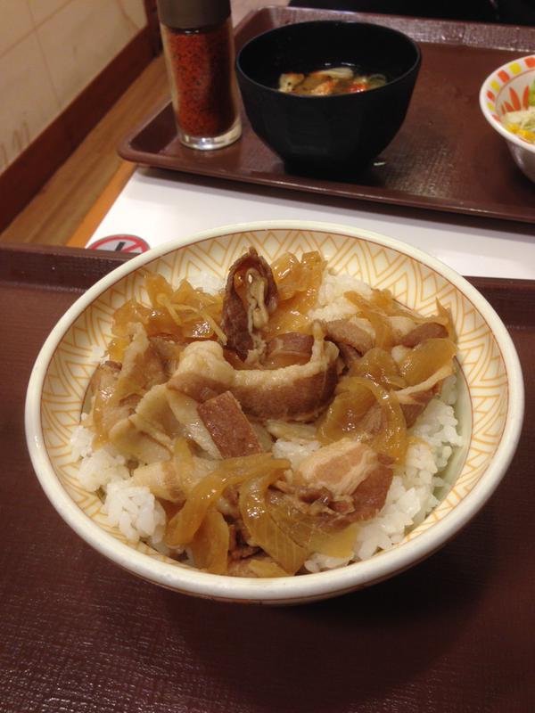 今朝すきやの並牛丼食べたがかなり肉多くなってたな。