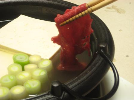 肉っていうより、熱々の豆腐やネギやしらたきとかを生卵につけて食べると(゚д゚)ウマー